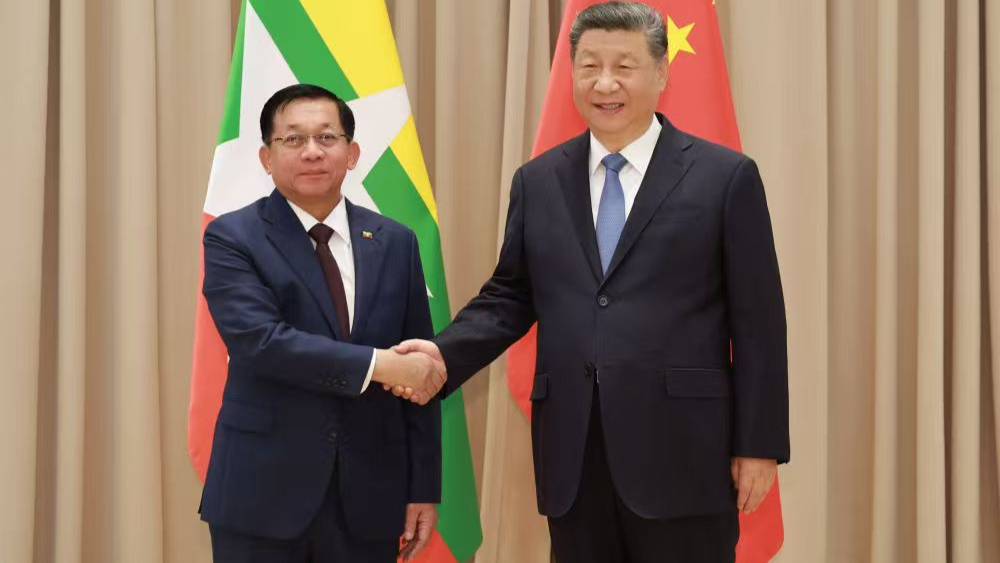ရှီကျင့်ဖိန်သည် မြန်မာနိုင်ငံအကြီးအကဲ ဗိုလ်ချုပ်မှူးကြီး မင်းအောင်လှိုင်နှင့် တွေ့ဆုံ