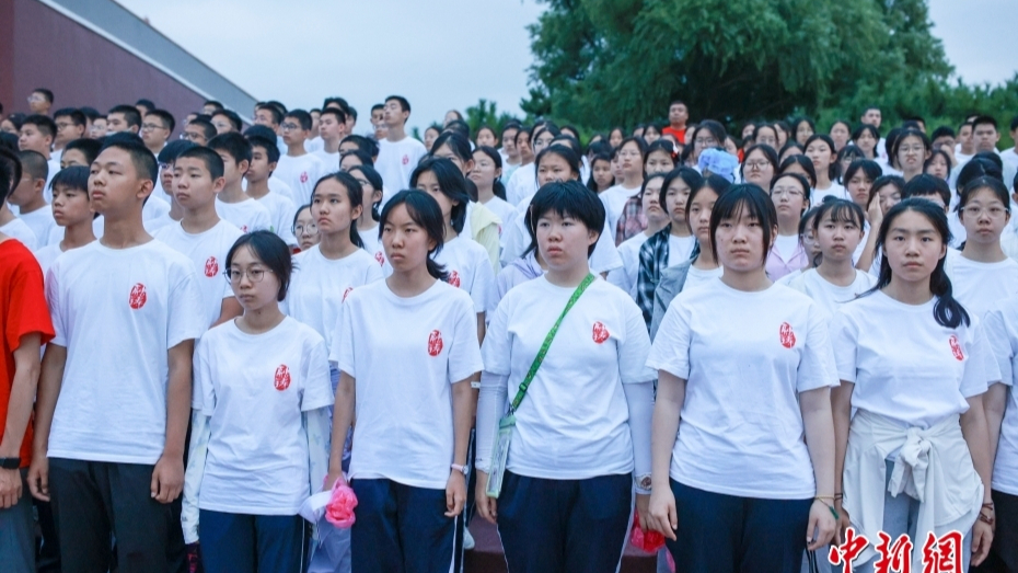 ပေကျင်း၊ ရှီးဇန့်၊ ရှင်းကျန်း၊ ချင်ဟိုင်းနှင့် အတွင်းမွန်ဂိုလီးယားဒေသတို့မှ အလယ်တန်း ကျောင်းသူကျောင်းသားများသည် ထျန်အန်မင်ကြည့်ရှုသည့်စင်မြင့်တွင် အလံတင်ခြင်း အခမ်းအနားကို ကြည့်ရှု