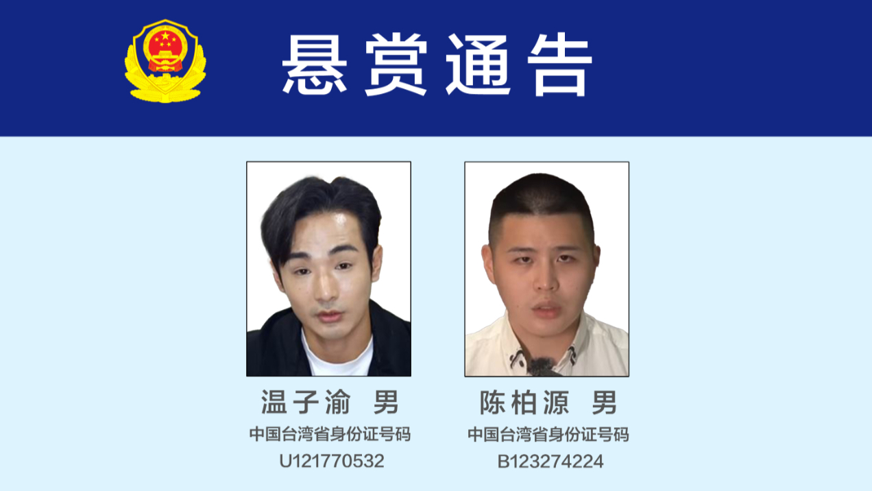 ပြည်သူ့လုံခြုံရေးဌာနသည် ထိုင်ဝမ်အွန်လိုင်းဆယ်လီ ဝမ်းဇီယွီနှင့် ချန်ဘိုယွမ်တို့၏ ရာဇဝတ်မှုဆိုင်ရာ သတင်းအချက်အလက်များ ရှာဖွေရန် ဆုငွေကမ်းလှမ်းချက် ထုတ်ပြန်