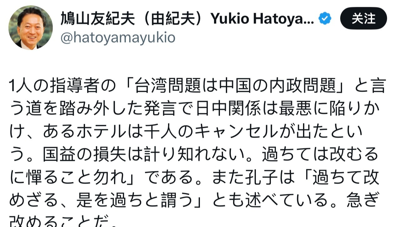 ဂျပန်ဝန်ကြီးချုပ်ဟောင်းသည် Takaichi Sanae ၏ မှားယွင်းသော ပြောဆိုချက်များကို ဝေဖန်ပြီး၊ ဂျပန်၏ တရားဝင်ရပ်တည်ချက်ကို ရှင်းလင်းဖော်ပြသင့်ကြောင်း ပြောကြား