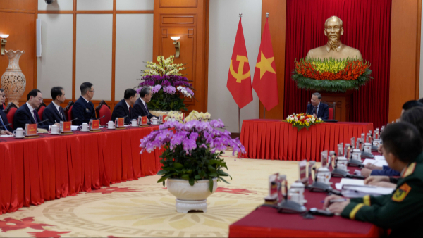 ဗီယက်နမ်ကွန်မြူနစ်ပါတီဗဟိုကော်မတီ အထွေထွေအတွင်းရေးမှူး တိုလမ်သည် ဝမ်ယီနှင့် ၎င်း၏ ကိုယ်စားလှယ်အဖွဲ့နှင့် တွေ့ဆုံ